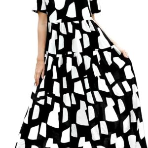 YESNO Women Casual Loose Bohemian Floral Dress with Pockets