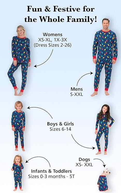 - PJs for the Whole Family – Available in adults, boys, girls, toddlers, infants, and dogs, they’re the best pajamas for your picture-perfect holiday; Now available in more sizes for the whole family!
