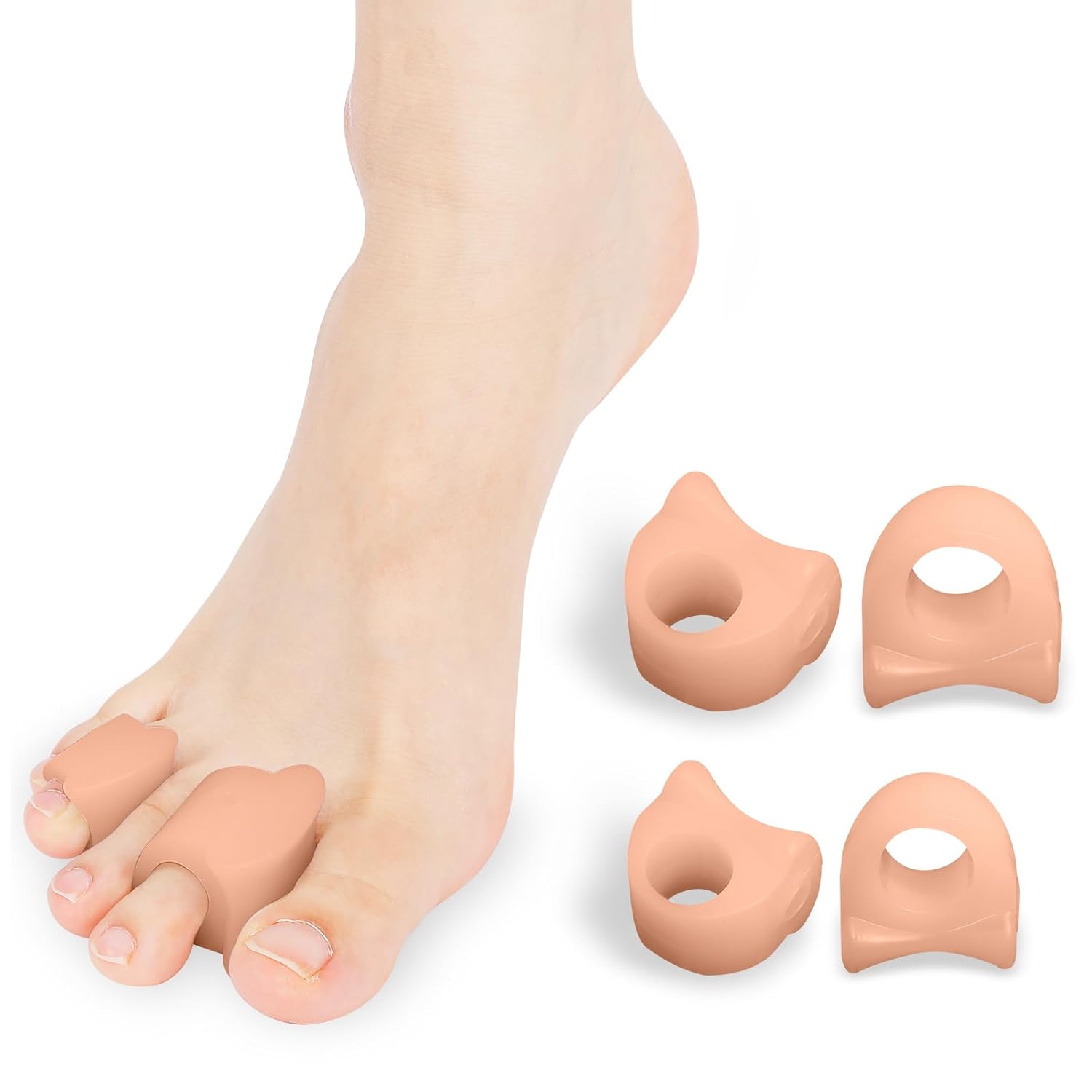 Toe Spacers for Women & Men – 4 Pcs Gel Toe Separators With 2 Sizes for Hammertoe,Overlapping Toes,Soft Comfortable Bunion Corrector for Foot Pain Relief (Beige,2 L & 2 M)