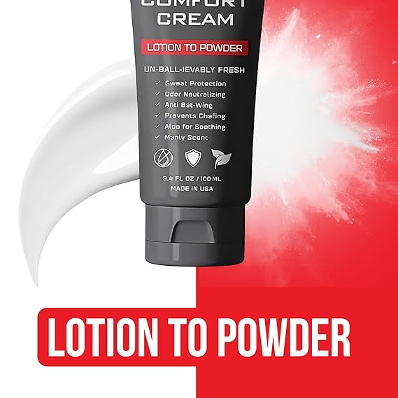 • LOTION-TO-POWDER TECHNOLOGY – Comfort Cream applies as a lotion, and dries as a powder to absorb your sweat and create an anti-friction layer, all while keeping you smelling like you just got out of the shower, even if you didn’t.