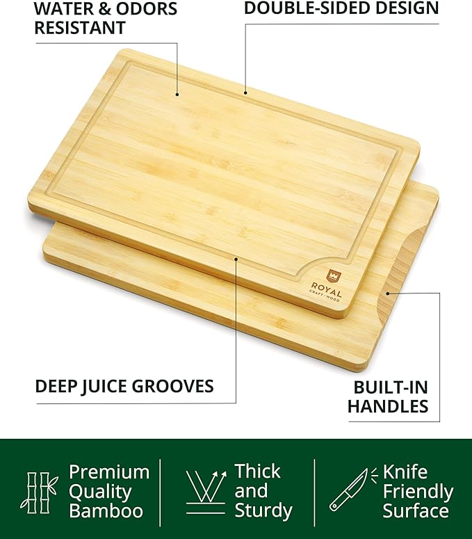 ROYAL CRAFT WOOD Extra Large Cutting Boards for Kitchen Meal Prep & Serving-Bamboo Wood Cutting Board with Deep Juice Groove – Charcuterie & Chopping Butcher Block for Meat – Gadgets Gift (XL 18×12″)