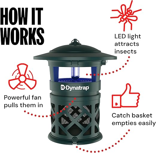 - Easy to Use – Place traps 3-6 feet above the ground. Plug the trap in and easily empty the catch basket with the touch of a button