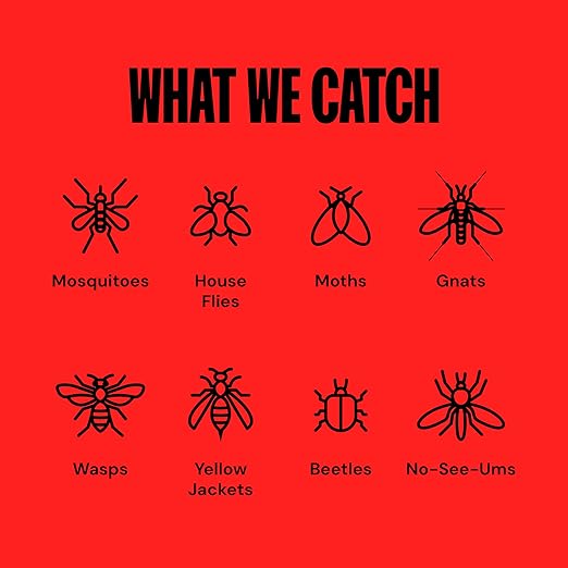 - What We Catch – Attracts, traps, and kills mosquitoes, biting flies, house flies, moths, no-see-ums, June beetles, wasps, yellow jackets, stink bugs, gnats, and biting midges