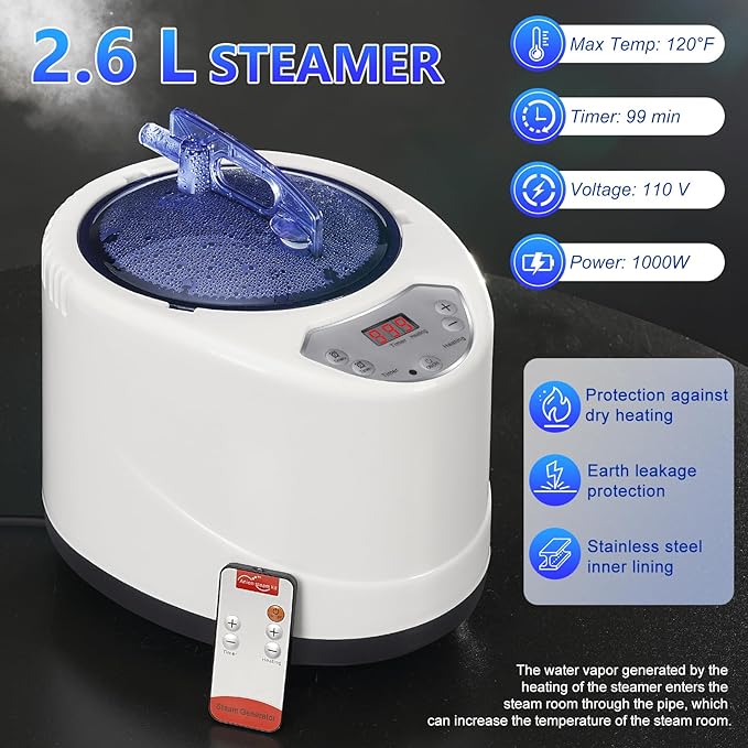 • 【Maximum Temperature 120℉/1-99 mins Timer】The high-power steamer can quickly generate steam and shorten the preheating time. You can set the temperature and time on the steamer or with the remote control. X-Vcak home sauna has anti-dry burning and anti-leakage functions, allowing you to enjoy the sauna with more peace of mind