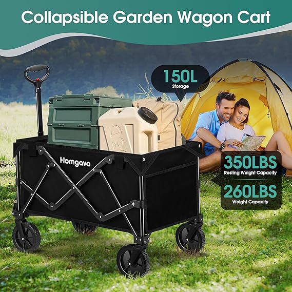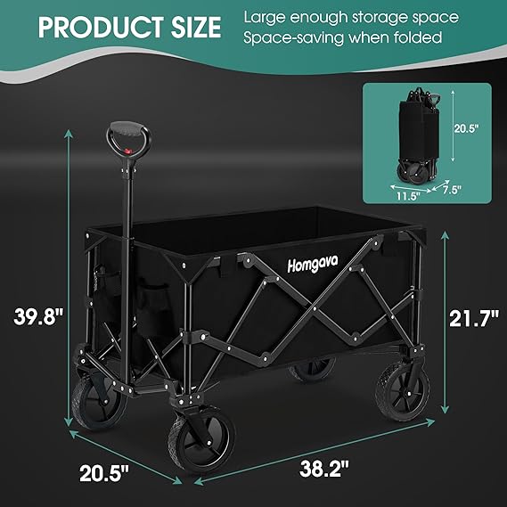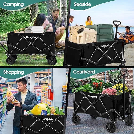 • 【Quick Setup and Collapse】The outdoor wagon cart with a compact design can be set up & folded in seconds without using tools. Just push center to open and pull center to fold it. It is easy to operate and transport.
