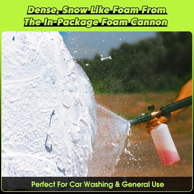 - 💦[Snow Foam Lance] Directly sprays foam. Cleansers don’t pass the pump for longer pump’s life so you can use chemicals like bleach, vingar and etc. Thicker and dense foam stays on the surface longer for better cleaning performance.