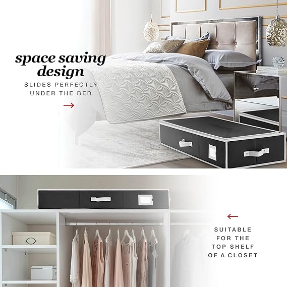 - SPACE SAVING – Finally, a gift wrap organizer that fits under your bed or in your closet! No more wasted space on bulky boxes. The Premium Wrap Organizer is the perfect solution for storing all of your Christmas wrapping paper rolls and accessories in this gift wrap storage box.