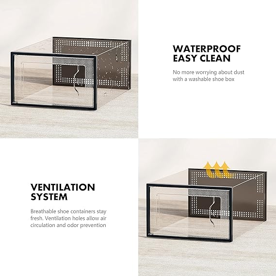 • Sturdy yet Breathable: Made of sturdy and premium plastic. Large rear ventilation holes ensure air circulation and odor prevention, breathable shoe containers stay fresh. Easy daily care – clean with mild soap and water.