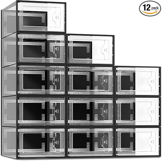 • What You Get: Pack of 12 shoe organizer with clear front door, great substitute for shoe rack, entryway, under bed storage, stackable and foldable design, ventilation holes, easy-to-follow instruction, neatly organize your shoes and friendly customer service. If you have any problem, please feel free to contact us, we will reply you within 12 hours.