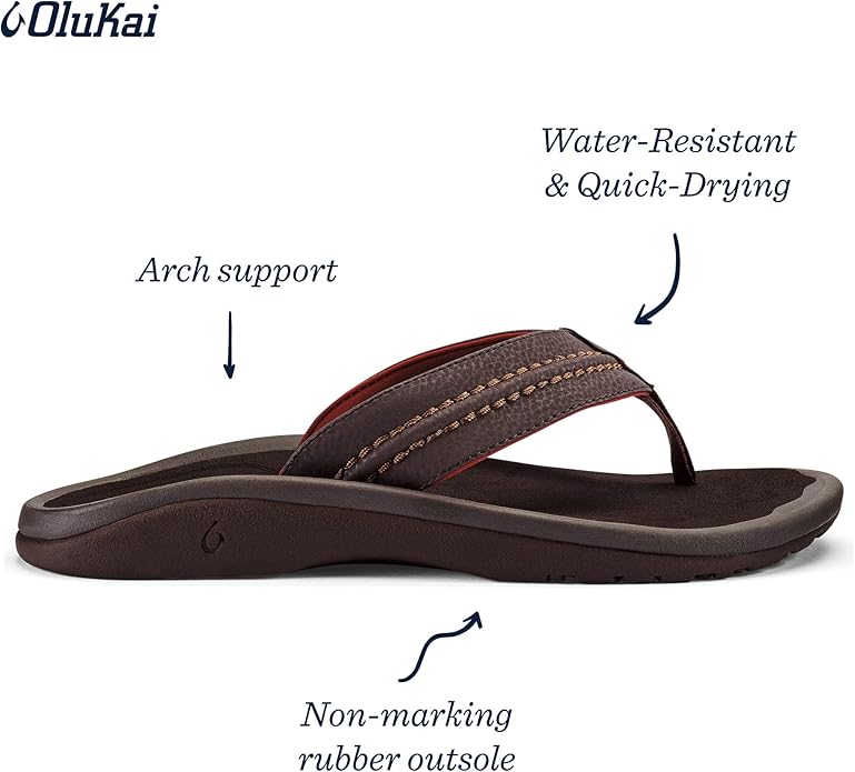 - WATER-RESISTANT & QUICK-DRY: Beach sandals, flip-flops, and slides all come together with comfort and style in the Hokua sandal, featuring water-resistant synthetic straps with quick-drying jersey knit lining and a soft comfortable nylon toe post.