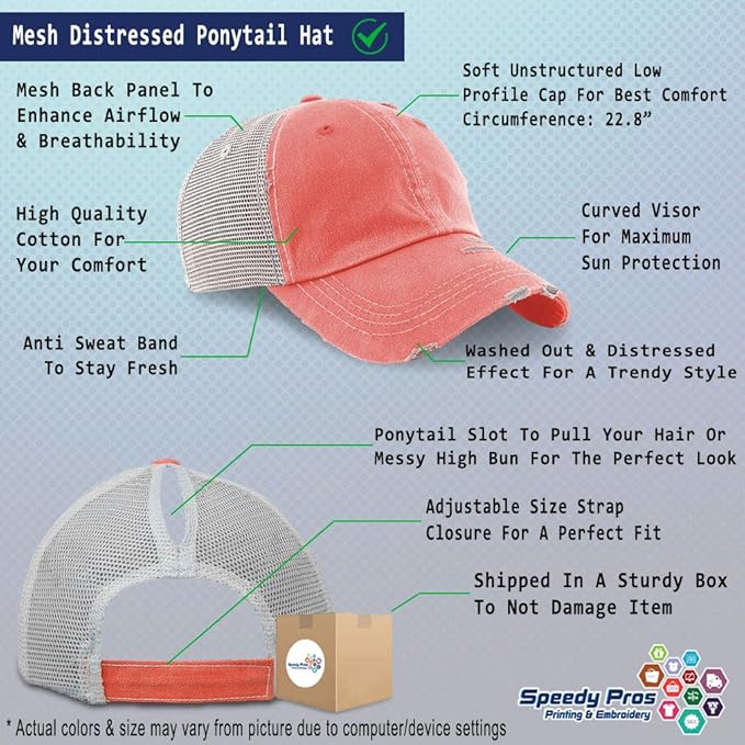 - UNIQUE DESIGNS AND FUN GRAPHICS: We put a lot of thought and time in the design on our women and men hats. We are proud to offer you our best selection and variety of Funny and Novelty ponytail caps and Funny distressed trucker hats.