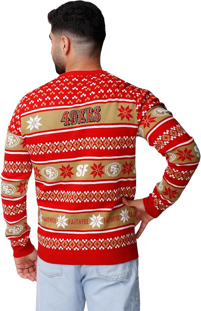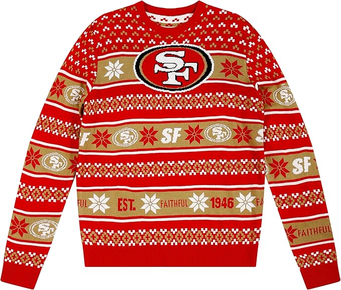 - Design: All-over team-colored design. This sweater is official team colors, so you can show your team spirit with pride. Bold team logos display: The front of the sweater features a large team logo, so everyone will know who you’re rooting for